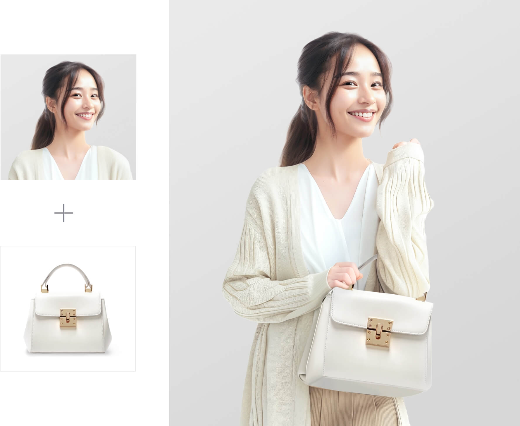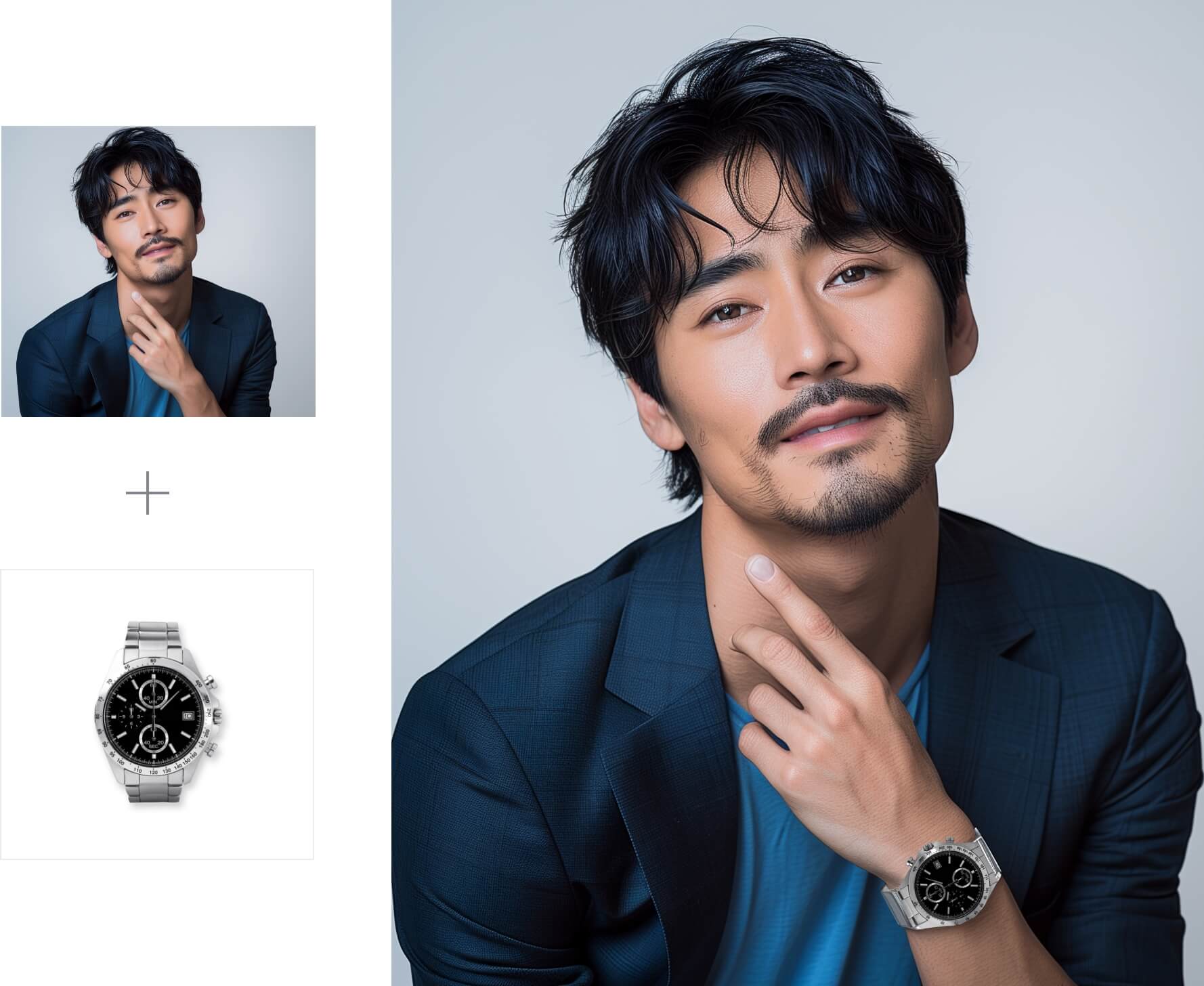 AIモデル×商品画像の合成までワンストップでお任せください。