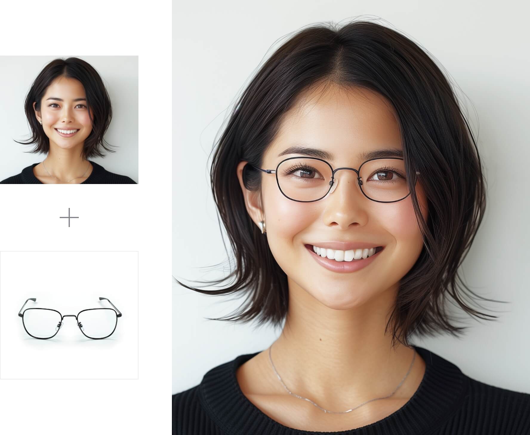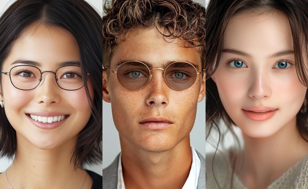 メガネ/サングラスなどのアイウェアのAIモデル装着画像撮影における、AI/AD MAKERSの3つの特徴をご紹介します。