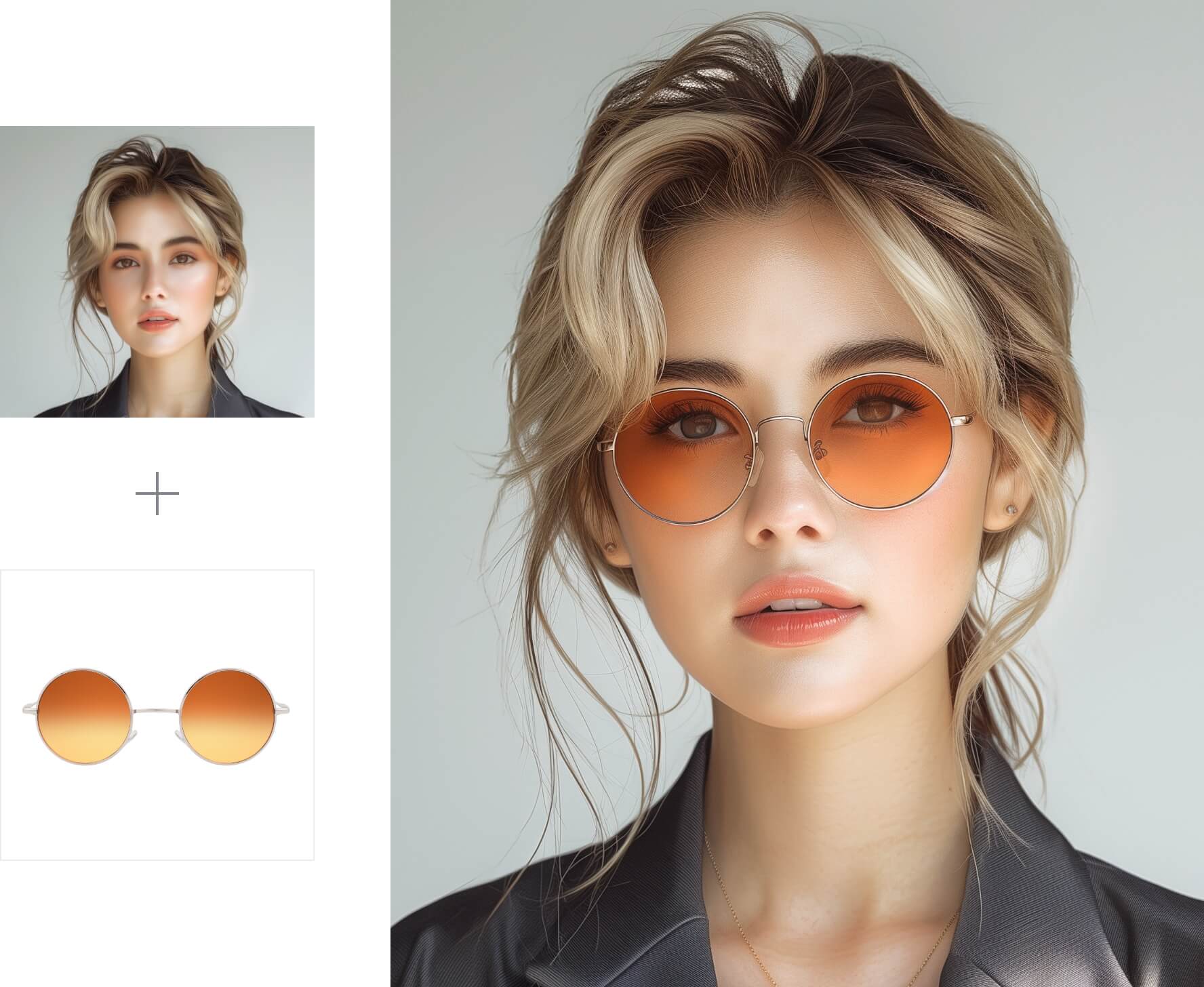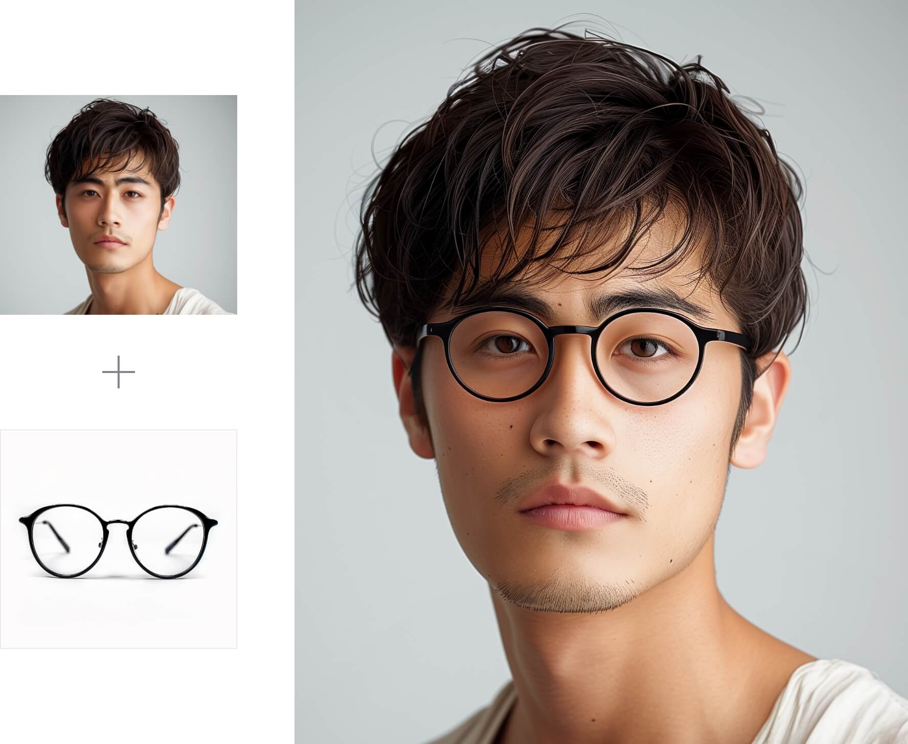 メガネ/サングラスなどのアイウェアのプロモーションにおけるAIモデル装着画像の撮影を、