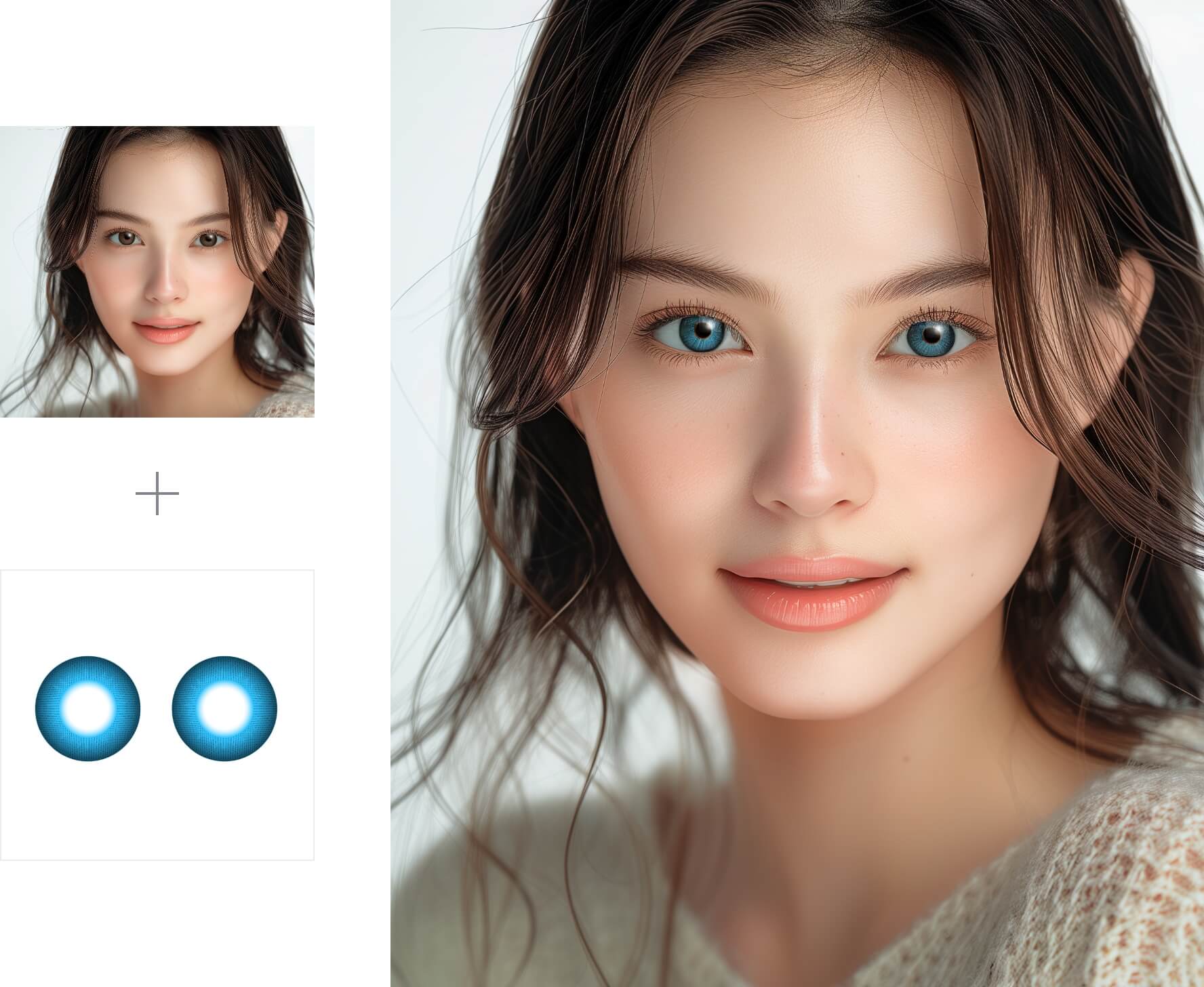 商品の撮影のみでEC/Webサイトに掲載するモデル装着画像を作成。モデルの変更や表情、ヘアメイクの変更も、撮影レスでスピーディに対応します。