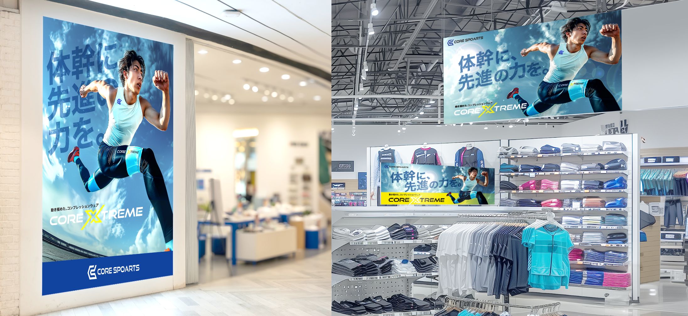 店頭ディスプレイもAIモデル活用キービジュアルでVI統一を図ることで、“デジタル”から“リアル”まで、ビジュアルの整合性を担保します。
